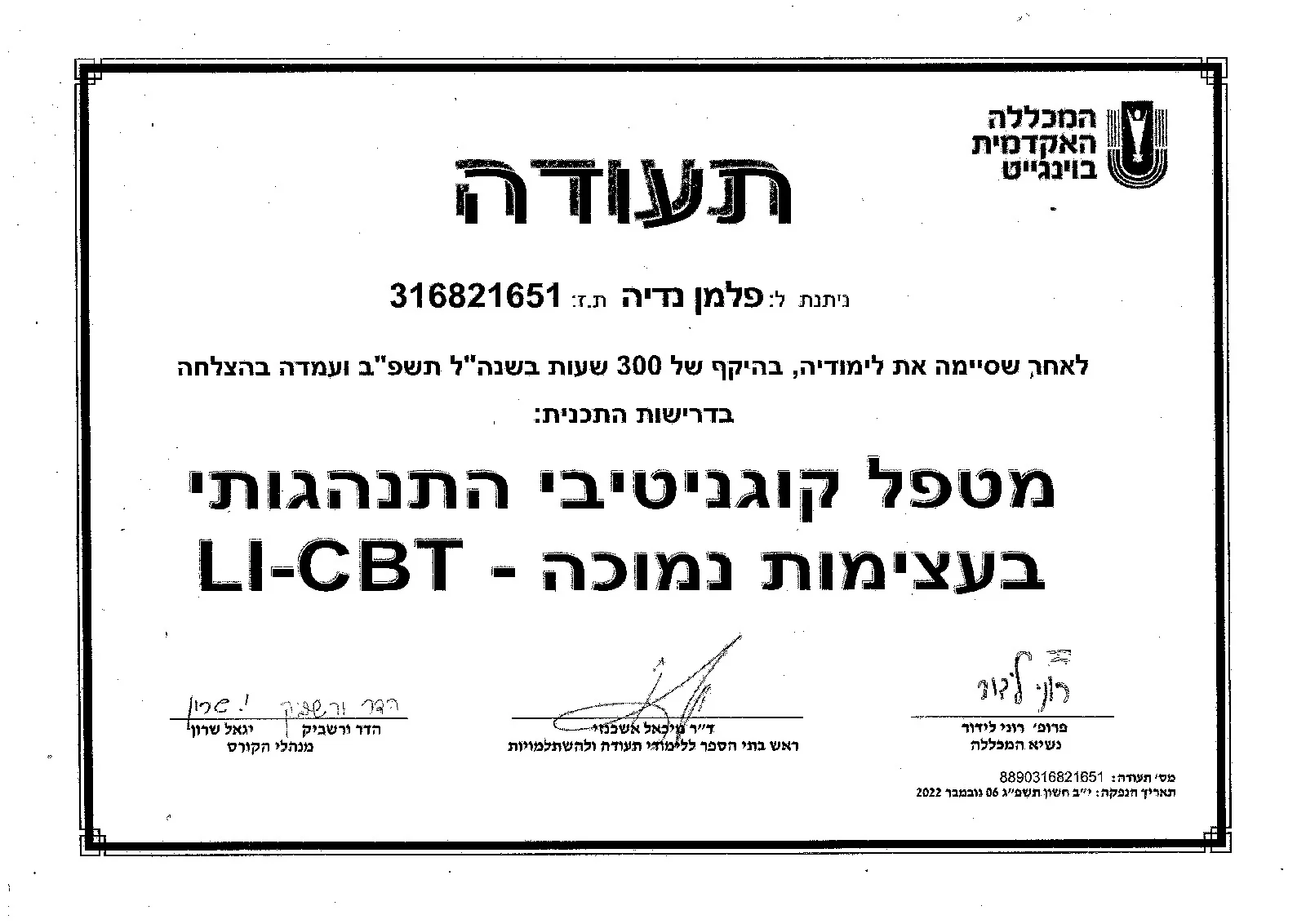 Когнитивно-поведенческий терапевт LICBT —The Academic College Levinsky-Wingate, Израиль, 2021−2022
