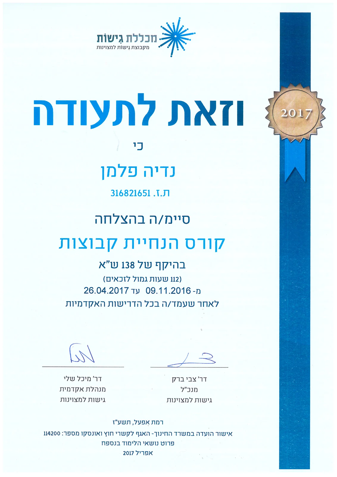 Ведущая групп — Gishot College, Израиль, 2016−2017