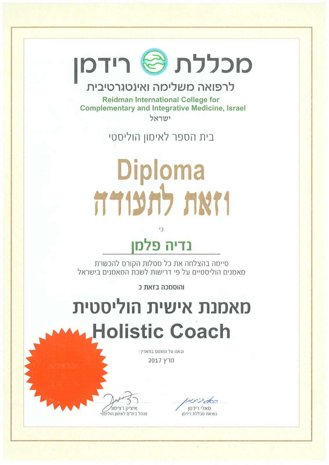 Коучинг — Reidman College, Израиль, 2015−2016
